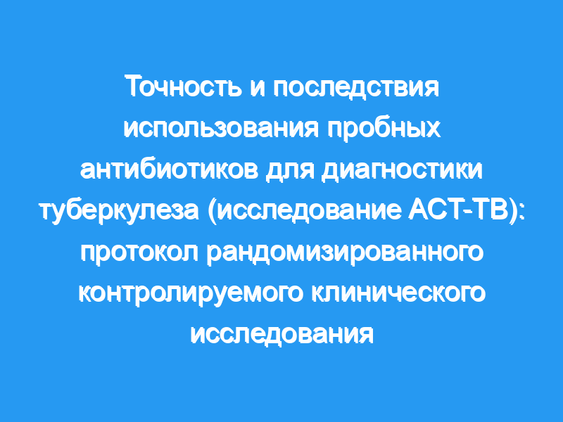 Более 40% сообщений о случаях туберкулеза в мире диагностируются клинически без микобактериологического подтверждения. Стандартные диагностические алгоритмы включают «пробу антибиотиков» — эмпирическое лечение антибиотиками, назначаемое лицам с отрицательным микобактериологическим результатом для лечения инфекционных причин симптомов, отличных от туберкулеза, в качестве «исключающего» диагностического теста на туберкулез. Потенциально 26,5 миллионов таких курсов антибиотиков в год назначаются во всем мире для 5,3 миллионов пациентов с отрицательным микобактериологическим результатом в год, что делает пробу антибиотиков наиболее распространенной диагностикой туберкулеза и глобальным риском развития устойчивости к противомикробным препаратам (AMR). Наш систематический обзор не выявил ни одного рандомизированного контролируемого исследования (РКИ), подтверждающего использование пробного применения антибиотика. Целью РКИ является определение диагностической и клинической ценности и последствий УПП от испытания антибиотиков. Методы и анализ: Открытое РКИ с тремя группами рандомизированных (1:1:1) взрослых жителей Малави (≥18 лет), обратившихся за первичной медицинской помощью по поводу кашля, на: (а) азитромицин 500 мг один раз в день в течение 3 дней или (б) амоксициллин по 1 г три раза в день. в течение 5 дней или (c) стандартное лечение (без немедленного применения антибиотиков). На начальном этапе мы проведем микобактериологические тесты (микроскопия, Xpert MTB/RIF (микобактерии туберкулеза/рифампицин) и посев микобактерий туберкулеза). Мы будем использовать самоинтервью с помощью аудиокомпьютера для оценки клинического улучшения на 8-й день. Первым первичным результатом будет доля пациентов, сообщивших об улучшении на 8-й день, из числа пациентов с отрицательной микобактериологией (специфичность). Вторым первичным исходом будет заболеваемость на 29-й день комбинированной конечной точкой либо смерти, либо госпитализации, либо пропущенного диагноза туберкулеза. Чтобы определить влияние AMR, мы сравниваем долю устойчивых изолятов Streptococcus pneumoniae из носоглотки на 29-й день. Для выявления абсолютной разницы в диагностической специфичности ≥10% с мощностью 80% потребуется 400 участников с отрицательным микобактериологическим результатом/arm. Мы оценим показатели эффекта, сравнив результаты лечения антибиотиками (комбинированными и индивидуальными) со стандартом лечения. Этика и распространение: Исследование было рассмотрено и одобрено Комитетом по исследованиям и этике Медицинского колледжа Малави, Комитетом по этике исследований Лондонской школы гигиены и тропической медицины (LSHTM) и Региональным комитетом по здравоохранению и этике исследований — Норвегия, а также Советом по фармации, лекарствам и ядам Малави. Мы представим тезисы докладов на соответствующих конференциях и подготовим рукопись для публикации в рецензируемом журнале. Регистрационный номер пробной версии: Клиническое исследование зарегистрировано в ClinicalTrials.gov , NCT03545373.