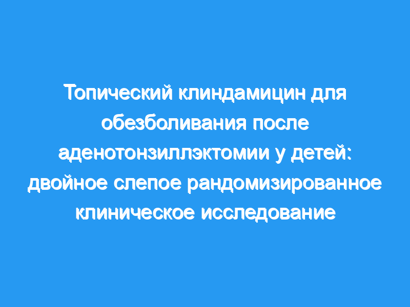 Тонзиллэктомия, с аденоидэктомией или без нее, является одной из наиболее распространенных хирургических процедур в детской отоларингологии. Боль является основной причиной заболеваемости в послеоперационном периоде, где в некоторых случаях она является серьезной, приводя к одинофагии и возникающим в результате осложнениям, таким как обезвоживание. Мы оценили влияние местного применения клиндамицина на уменьшение боли в ротоглотке у детей, перенесших аденотонзиллэктомию. Вторичными исходами были оталгия, применение анальгетиков, количество бактерий в полости рта, тип диеты, вторичное кровотечение, рвота, лихорадка и потеря веса. Дизайн исследования: Двойное слепое рандомизированное клиническое исследование.