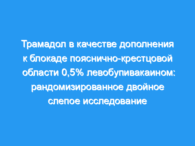 Трамадол вводили периферически, чтобы продлить обезболивание после блокады плечевого сплетения и нейроаксиальных блоков. Наша цель состояла в том, чтобы оценить системные и периневральные эффекты трамадола в качестве анальгетического дополнения к блокаде пояснично-крестцового отдела (ПКБ) левобупивакаином.