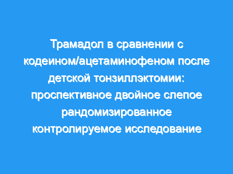 Тонзиллэктомия — одна из наиболее распространенных педиатрических хирургических процедур, выполняемых в Соединенных Штатах. Послеоперационный период может быть особенно болезненным, и в настоящее время нет единого мнения об оптимальном режиме обезболивания. Целью этого исследования была оценка эффективности и безопасности одного препарата трамадола по сравнению с кодеином/ацетаминофеном после тонзиллэктомии. Дизайн: Проспективное двойное слепое рандомизированное контролируемое исследование.
