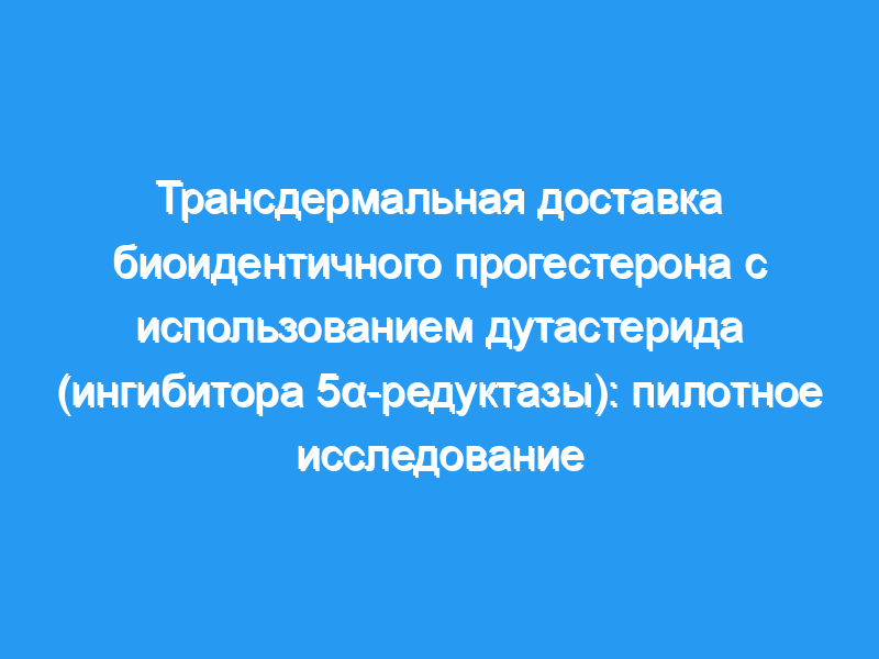 Биодоступность трансдермального прогестерона низкая и изменчива. Это может быть связано с трансдермальным метаболизмом ферментами 5α-редуктазы или прямым переносом в слюну. Целью настоящего исследования была оценка влияния ингибирования фермента на биодоступность трансдермального прогестерона. Были оценены уровни прогестерона в сыворотке и слюне, чтобы лучше понять механизм переноса прогестерона через кожу. Метод: Для участия в исследовании были отобраны двадцать женщин в постменопаузе с уровнем фолликулостимулирующего гормона >, 40 МЕ/л. Испытуемые были случайным образом распределены либо на дутастерид (n=10), либо на плацебо (n=10). Каждая группа наносила либо 500 мг неионного крема, либо крем с дутастеридом (2 мг/г) на правую руку в течение 2 недель. За этим последовало применение 500 мг прогестерона или крема с прогестероном дутастеридом (эквивалентно 40 мг прогестерона) в течение следующих 2 недель. На 30-й день в течение более 12 часов собирали кровь и слюну и измеряли концентрацию прогестерона.