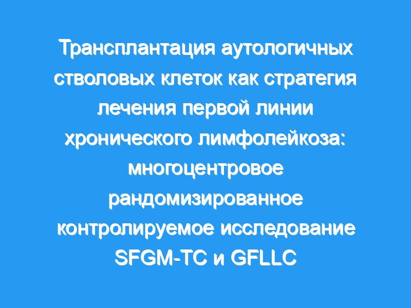 Сообщалось о долгосрочных реакциях после трансплантации аутологичных стволовых клеток (ASCT) при хроническом лимфолейкозе (ХЛЛ). Мы провели проспективное рандомизированное исследование ASCT у ранее не лечившегося пациента с ХЛЛ.