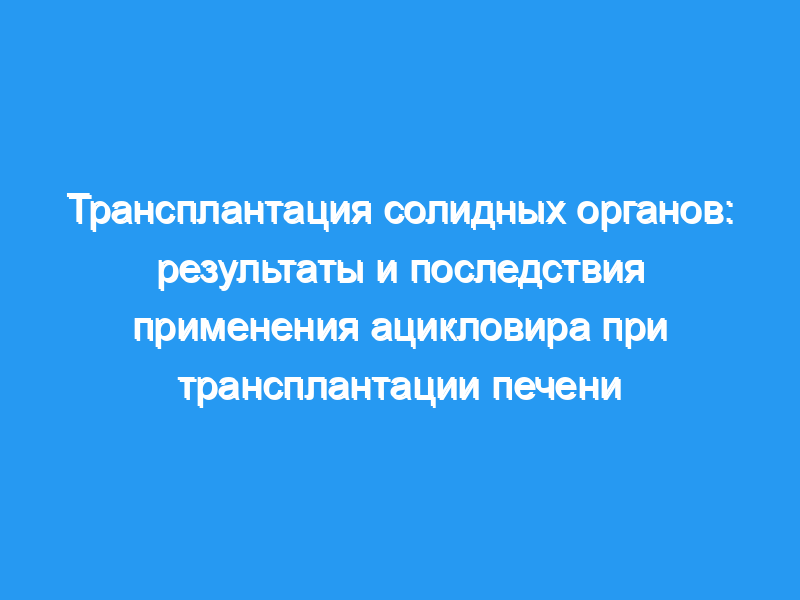 ЦМВ-инфекция является основной причиной заболеваемости и смертности после трансплантации печени (ТП). Проспективное исследование 218 реципиентов LT показало, что у 55% пациентов развилась ЦМВ-инфекция в течение 1-го года после трансплантации.