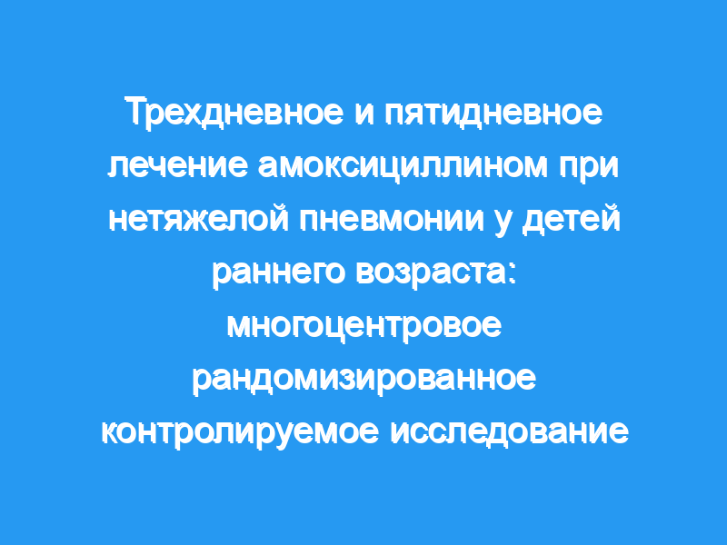 Оценить эффективность трехдневного и пятидневного лечения пероральным амоксициллином для лечения нетяжелой пневмонии у детей. Дизайн: Рандомизированное, двойное слепое, плацебо-контролируемое многоцентровое исследование.