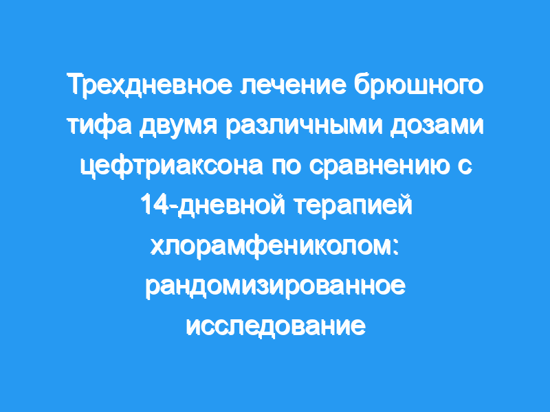 Это исследование предполагает, что короткое трехдневное лечение брюшного тифа цефтриаксоном (3 или 4 г один раз в день) является адекватным и не опасным в отношении рецидивов.