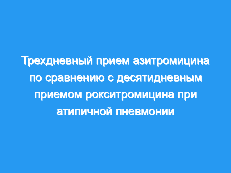 В открытом рандомизированном многоцентровом исследовании сравнивалась эффективность и безопасность 3-дневного азитромицина с 10-дневным рокситромицином для лечения атипичной пневмонии.