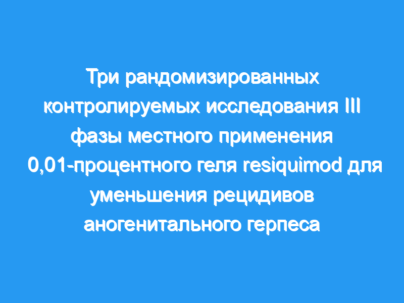Были проведены три рандомизированных, двойных слепых, контролируемых носителем исследования III фазы местного применения резиквимода для уменьшения рецидивов аногенитального герпеса. у здоровых взрослых с ≥4 рецидивами в течение предыдущего года.