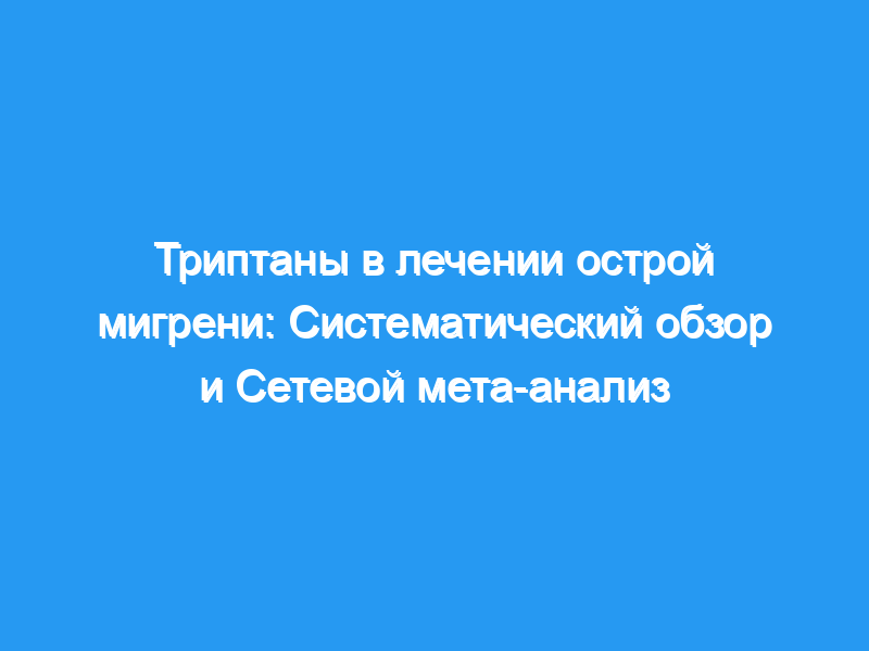 Хотя триптаны широко используются для лечения острой мигрени, существует неопределенность в отношении сравнительной эффективности триптанов друг с другом и по сравнению с нетриптановыми методами лечения мигрени. Мы провели систематические обзоры и сетевые мета-анализы, чтобы сравнить относительную эффективность триптанов (отдельно или в комбинации с другими препаратами) для лечения острой мигрени по сравнению с другими препаратами триптана, нестероидными противовоспалительными препаратами (НПВП), ацетилсалициловой кислотой (АСК), ацетаминофеном, спорыньей, опиоидами или противорвотное средство.