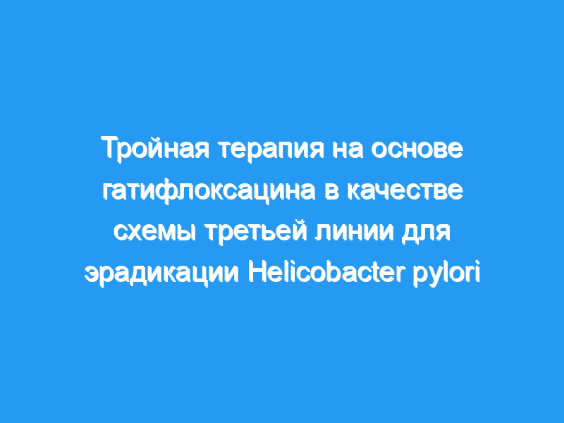 В исследование были включены четырнадцать пациентов, у которых эрадикация не удалась как после тройной терапии на основе кларитромицина, так и после тройной терапии на основе метронидазола, или которые были инфицированы изолятами H. pylori, устойчивыми как к кларитромицину, так и к метронидазолу, после неудачной тройной терапии на основе кларитромицина. Эти пациенты были случайным образом распределены на две группы: (i) рабепразол и амоксициллин (RA) и (ii) рабепразол, амоксициллин и GAT в течение 7 дней (RAG). Минимальные ингибирующие концентрации определяли методом разведения агара. Ген gyrA был исследован путем секвенирования.