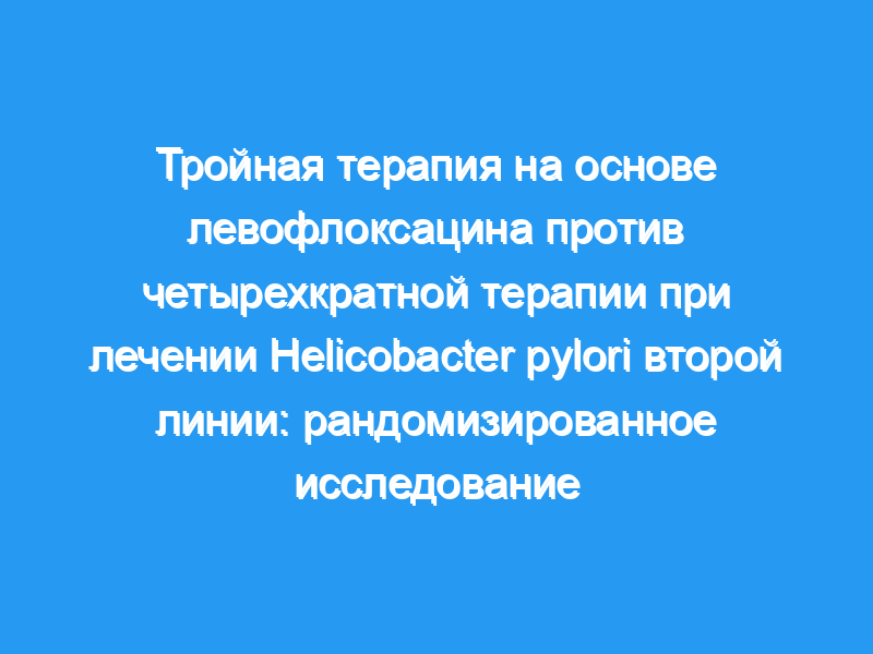 Десятидневная терапия на основе левофлоксацина лучше, чем стандартные четырехкратные схемы, как вариант второй линии для эрадикации H. pylori.