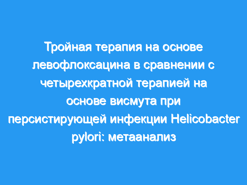 Тройная терапия на основе левофлоксацина была предложена в качестве альтернативы спасительной терапии четырехкратной терапии на основе висмута при персистирующей инфекции Helicobacter pylori (H. pylori).