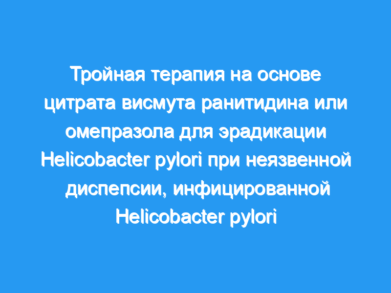 Чтобы проверить скорость эрадикации Helicobacter pylori тройной терапией на основе цитрата висмута ранитидина и оценить симптоматический ответ эрадикационной терапии Helicobacter pylori при неязвенной диспепсии.