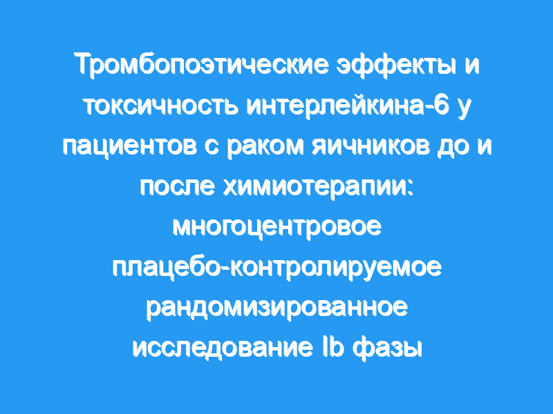 Данные указывают на то, что IL-6 является хорошо переносимым цитокином и способен ускорять восстановление тромбоцитов у пациентов, получающих химиотерапия.