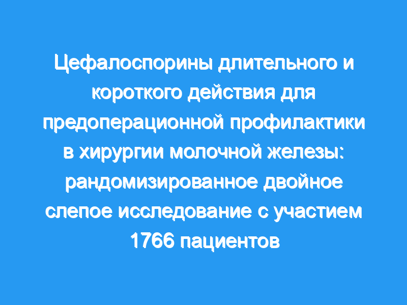 Мы оценили эффективность предоперационной антибиотикопрофилактики перед операцией в рандомизированном двойном слепом исследовании с участием 1766 пациентов, перенесших операцию на груди.