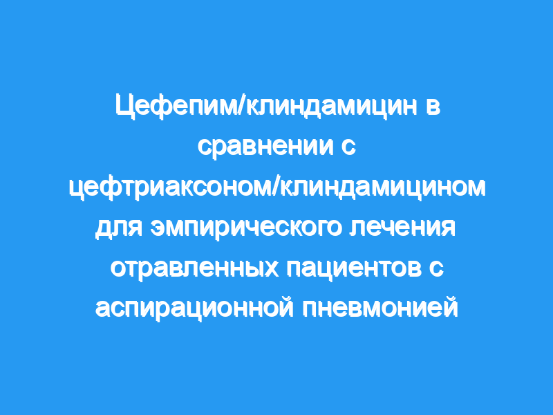 В этом исследовании мы стремились сравнить эффективность цефепима/клиндамицина и цефтриаксона/клиндамицина для эмпирической терапии отравленных пациентов с аспирационной пневмонией.
