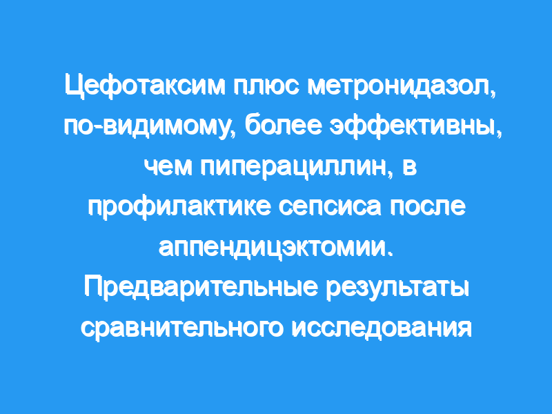 Это исследование подтверждает, что комбинация цефотаксима и метронидазола, по-видимому, более эффективна, чем один только пиперациллин, в уменьшении сепсиса после аппендицэктомии.