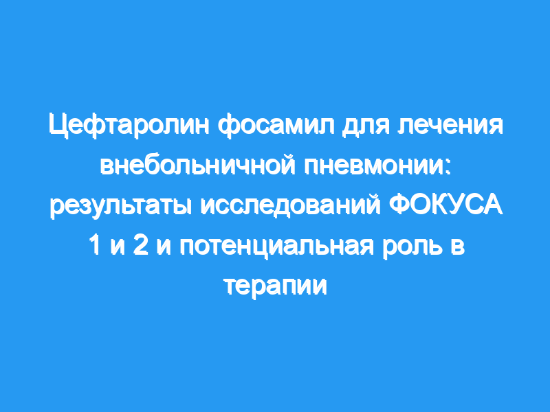 В двух крупных клинических испытаниях III фазы (ФОКУС 1 и 2) сообщалось, что цефтаролин фосамил хорошо переносится, а клиническая частота излечения CAP не уступает что с цефтриаксоном у взрослых стационарных пациентов отделения интенсивной терапии с умеренно тяжелой (оценка Исследовательской группы по исходам пневмонии III или IV) внебольничной пневмонией.