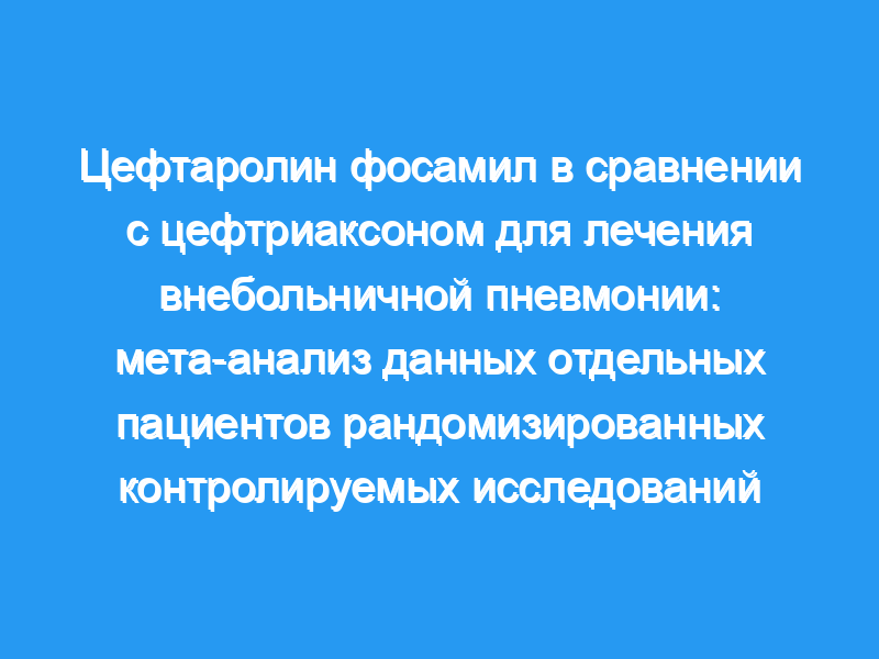 Три испытания III фазы (clinicaltrials.gov регистрационные номера NCT00621504, NCT00509106 и NCT01371838), включая 1916 госпитализированных пациентов с CAP, рандомизированных в соотношении 1:1 на эмпирический цефтаролин фосамил (600 мг каждые 12 ч) или цефтриаксон (1-2 г каждые 24 ч) в течение 5-7 дней, были включены в мета-анализ. Первичным результатом был клинический ответ при посещении с целью проверки на излечение (через 8-15 дней после окончания лечения) в группах с модифицированным ITT 3-4-го класса риска (MITT) и клинически оцениваемой (CE) популяцией. Данные были проверены на неоднородность (критерийχ(2)), и, если они не были значимыми, результаты были объединены и рассчитаны ИЛИ и 95% ДИ. С помощью логистического регрессионного анализа были оценены факторы, влияющие на скорость излечения и взаимодействие с лечением.