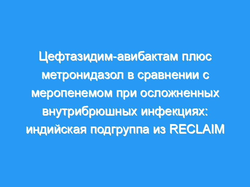 В этом исследовании анализируются результаты по безопасности и эффективности подгруппы индийской популяции из исследования RECLAIM, в котором изучалась неполноценность Цефтазидим-Авибактама (CAZ-AVI) плюс метронидазола по сравнению с меропенемом, и интерпретируется его актуальность. Методология: Дизайн исследования, критерии включения испытуемых, дозировка, оценка безопасности и эффективности у индийских пациентов были выполнены в соответствии с протоколом исследования RECLAIM.