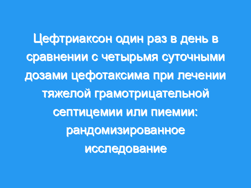 В рандомизированном сравнительном исследовании взрослых пациентов, страдающих грамотрицательной септицемией или пиемией, лечили либо однократной суточной дозой 1,5 г цефтриаксона у большинства пациентов, либо 6 г цефотаксима, разделенного на четыре суточные дозы.