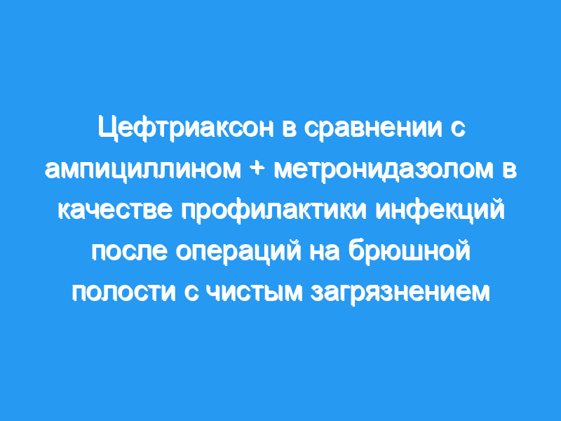 В проспективном контролируемом двойном слепом исследовании 496 пациентам, перенесшим абдоминальную хирургию, была проведена антибиотикопрофилактика однократной дозой цефтриаксона или ампициллина + метронидазола.