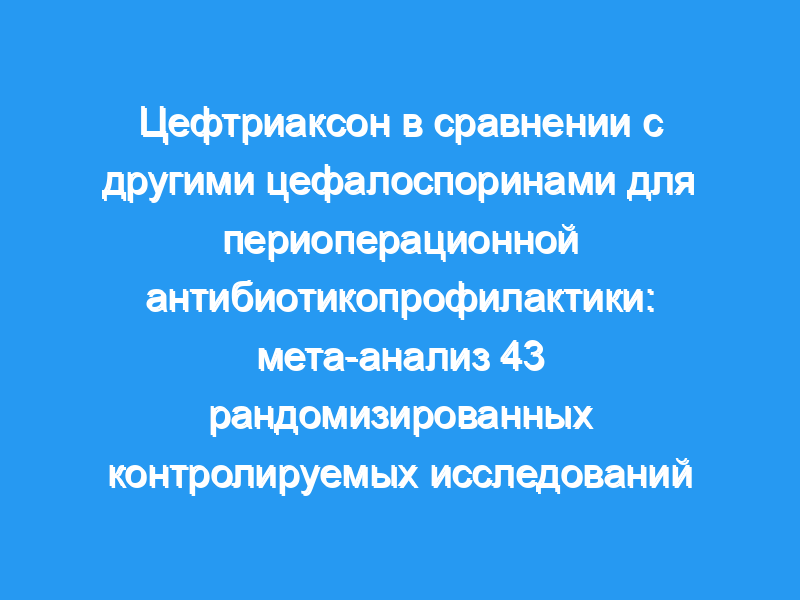Эффективность цефтриаксона по сравнению с другими цефалоспоринами в периоперационной профилактике инфекций хирургических ран, мочевыводящих путей и дыхательных путей сравнивалась в мета-анализе рандомизированных контролируемых исследований, опубликованных в период с 1986 по 1996 год, определенных из базы данных Medline, Embase, SIGLE, ROPU, DHSS-Data и Medikat Cologne.