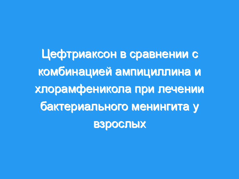 Цефтриаксон, вводимый внутривенно, по-видимому, так же эффективен, как комбинация ампициллина и хлорамфеникола при лечении взрослых пациентов с менингитом из-за N. meningitidis и S. pneumonia.