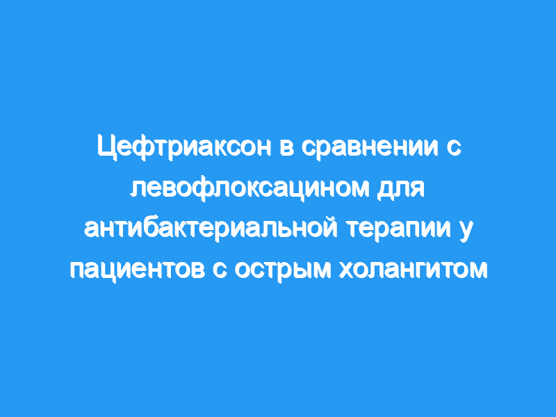 Клинический эффект левофлоксацина и цефтриаксона у пациентов с острым холангитом не выявил существенных различий. Из-за повышения эффективности in vitro может оказаться полезной рассчитанная терапия левофлоксацином.