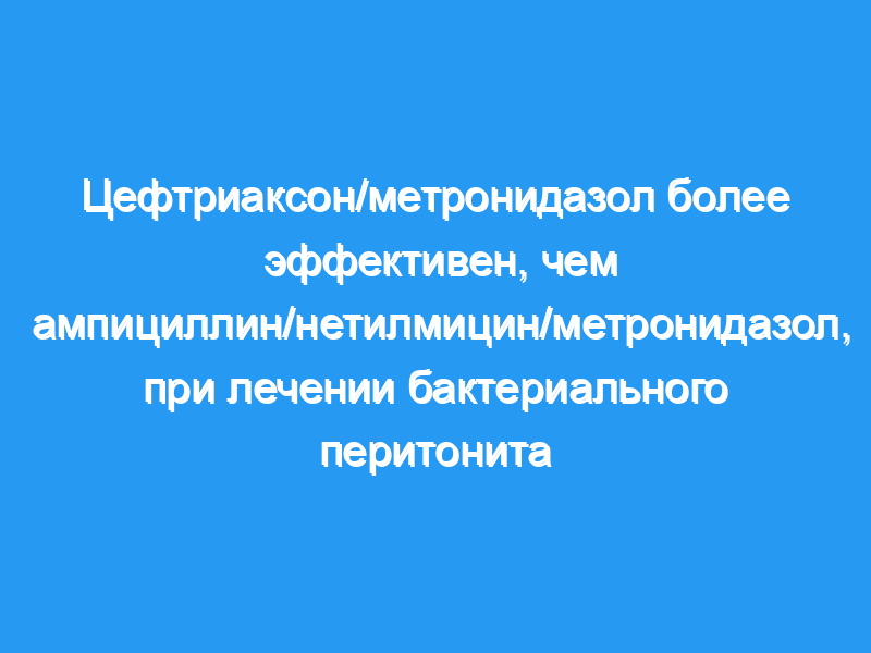 Мы считаем цефтриаксон плюс метронидазол эффективным и легко назначаемым режимом приема антибиотиков у пациентов с бактериальным перитонитом, а также широким спектром активности в отношении грамположительныхотрицательная аэробная активность и длительный период полувыведения цефтриаксона, по-видимому, являются полезными.
