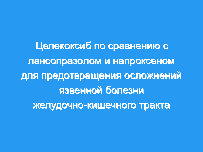 Целекоксиб был столь же эффективен, как и сопутствующая терапия лансопразолом, в профилактике рецидивов язвенные осложнения у пациентов с осложненными пептическими язвами, связанными с НПВП, в анамнезе. Однако целекоксиб, как и сопутствующая терапия лансопразолом, по-прежнему ассоциировался со значительной долей рецидивов язвенных осложнений. Кроме того, у большего числа пациентов, получавших целекоксиб, развилась диспепсия, чем у пациентов, получавших лансопразол и напроксен.