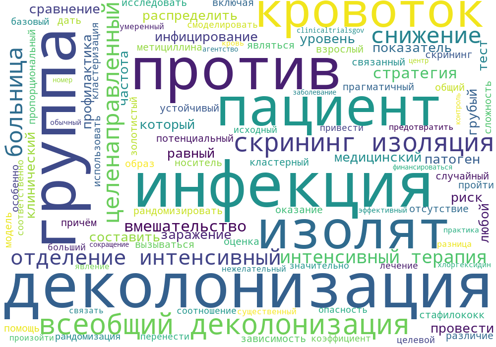 В общей сложности 43 больницы (включая 74 отделения интенсивной терапии и 74 256 пациентов в период вмешательства) прошли рандомизацию. В период вмешательства по сравнению с базовым периодом смоделированные коэффициенты опасности для клинических изолятов MRSA составили 0,92 для скрининга и изоляции (грубый показатель, 3,2 против 3,4 изолятов на 1000 дней), 0,75 для целевой деколонизации (3,2 против 4,3 изолятов на 1000 дней) и 0,63 для всеобщей деколонизации (2,1 против 3,4 изолятов на 1000 дней). 1000 дней) (Р=0,01 для теста всех равных групп). В периоды вмешательства по сравнению с исходным уровнем соотношение рисков заражения кровотока любым патогеном в трех группах составило 0,99 (грубый показатель, 4,1 против 4,2 инфекции на 1000 дней), 0,78 (3,7 против 4,8 инфекции на 1000 дней) и 0,56 (3,6 против 6,1 инфекции на 1000 дней) соответственно (Р<,0,001 для теста всех равных групп). Всеобщая деколонизация привела к значительно большему снижению уровня всех инфекций кровотока, чем целенаправленная деколонизация или скрининг и изоляция. На 54 пациента, перенесших лечение, была предотвращена одна инфекция кровотока. Снижение частоты инфицирования кровотоком MRSA было таким же, как и при всех инфекциях кровотока, но разница не была существенной. Нежелательные явления, которые произошли у 7 пациентов, были умеренными и были связаны с хлоргексидином.