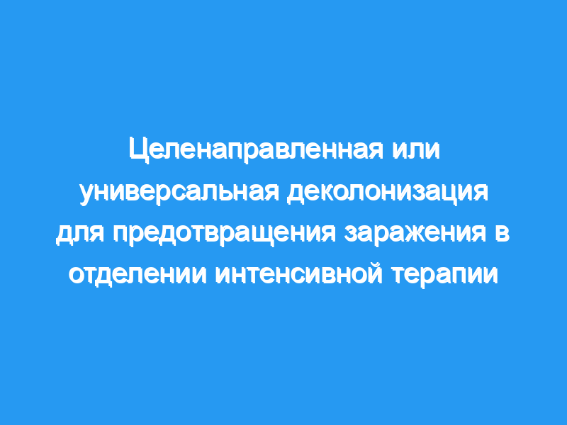 Как целенаправленная деколонизация, так и всеобщая деколонизация пациентов в отделениях интенсивной терапии (ОИТ) являются потенциальными стратегиями профилактики инфекций, связанных с оказанием медицинской помощи, особенно тех, которые вызываются устойчивым к метициллину золотистым стафилококком (MRSA).