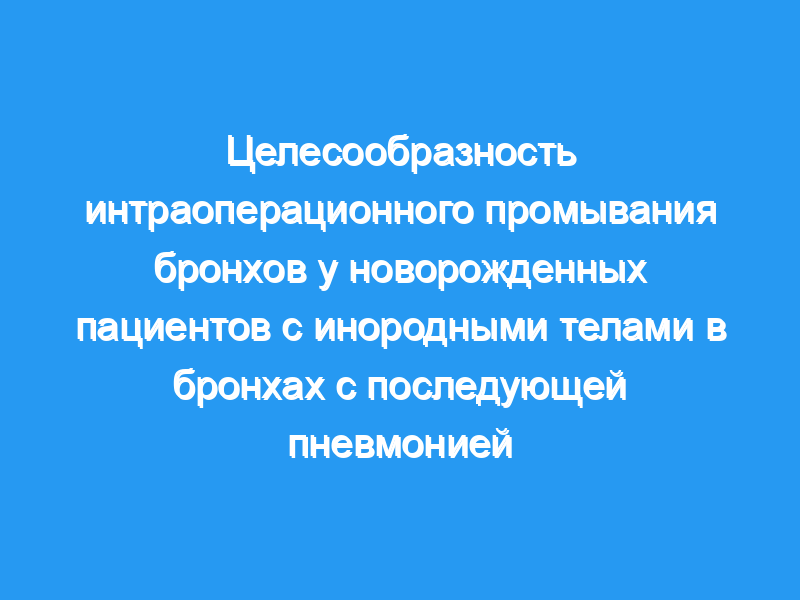 Интраоперационная БЛ является безопасной и эффективной терапией для снижения частоты осложнений и улучшения выздоровления у новорожденных пациентов с инородными телами в бронхах с последующей пневмонией.