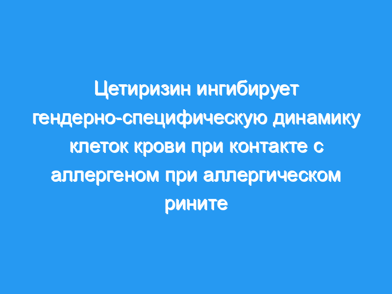 Женский пол был связан с выраженным увеличением циркулирующих моноцитов (p <, 0,01), а мужской пол — со снижением уровня эозинофилов (p <, 0,05). в группе плацебо, но не у субъекта, получавшего цетиризин.