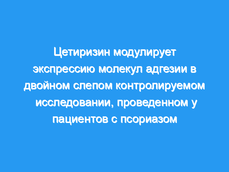 Псориаз представляет собой хронический воспалительный иммунный дерматоз, опосредованный Т-клетками, характеризующийся кожной экспрессией молекул адгезии, принадлежащих к подсемействам бета1 и бета2 интегринов, таких как молекула внутриклеточной адгезии (ICAM)-1, ICAM-3, антиген, ассоциированный с функцией лимфоцитов (LFA)-1, молекула адгезии сосудистых клеток (VCAM) -1 и молекула эндотелиальной адгезии (ELAM) -1. Цетиризин является неседирующим, селективным антагонистом Н1-рецепторов, терапевтическая эффективность которого, вероятно, является результатом его воздействия как на немедленную аллергическую реакцию, так и на аллергические реакции поздней фазы.