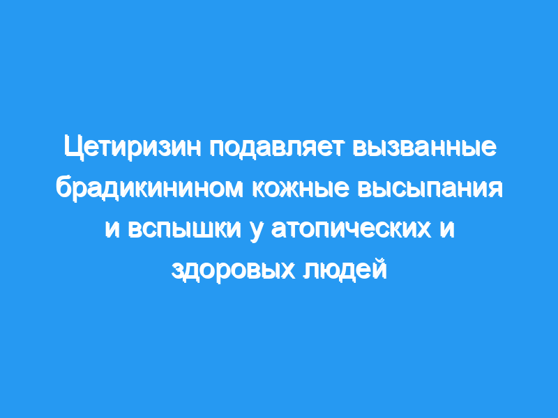Кинины являются вазоактивными медиаторами, участвующими в аллергических реакциях. При нанесении на кожу или в нос брадикинин (BK) вызывает воспаление, на которое плохо влияет предыдущая H1-блокада. Целью этого исследования было сравнить возможное влияние цетиризина (H1-антагониста) на реакции wheal и flare на BK, гистамин и соединение 48/80 у атопических и здоровых людей.