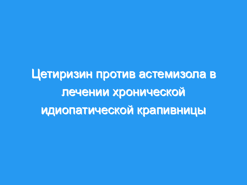 В 4-недельном двойном слепом рандомизированном параллельном исследовании для сравнения эффективности цетиризина и астемизола было включено 47 пациентов с хронической идиопатической крапивницей, при этом для окончательного анализа были учтены 19 пациентов, получавших цетиризин и 17 пациентов, получавших астемизол.