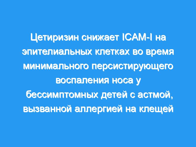 У детей, получавших цетиризин, наблюдалось значительное снижение (или даже полное отсутствие) экспрессии ICAM-I на эпителиальных клетках (р менее 0,002) и тенденция к снижению количества воспалительных клеток по сравнению с плацебо.