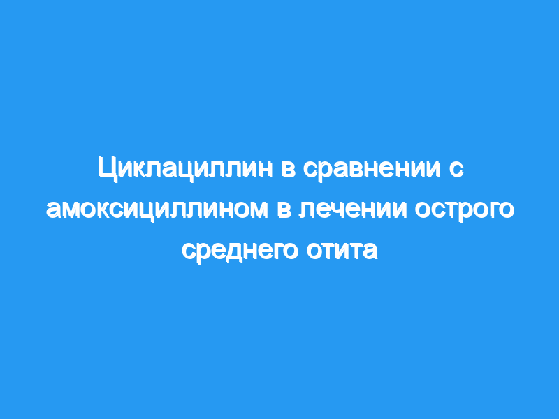 Двойное слепое исследование 240 детских амбулаторных пациентов с острым средним отитом показало, что циклациллин, назначаемый три раза в день в течение десяти дней, так же эффективен и лучше переносится, чем аналогичный режим амоксициллина.
