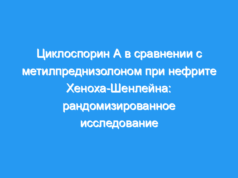 Целью нашего исследования является сравнение циклоспорина А (CyA) и метилпреднизолона (MP) в лечении тяжелого HSN. Из 24 педиатрических пациентов с HSN с протеинурией нефротического диапазона или серповидным HSN при биопсии почки семеро были рандомизированы для получения CyA в течение 12 месяцев в начальной дозе 5 мг/кг, а восемь — для получения 3-МП импульсов по 30 мг/кг с последующим приемом преднизолона в течение 4 месяцев.
