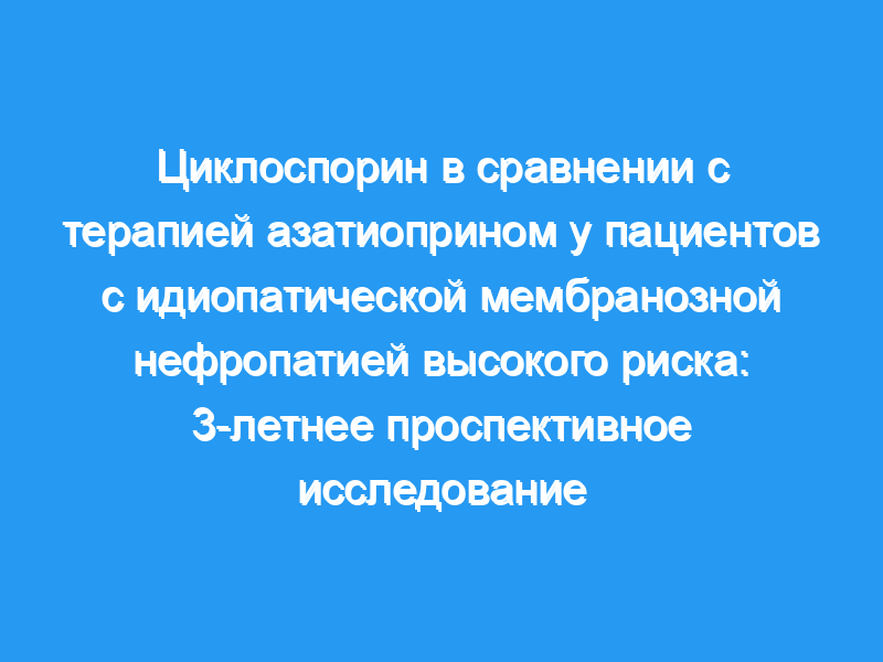 В этом исследовании проспективно наблюдались 3-летние пациенты с ИМН, которые не реагировали на протокол Понтичелли, сравнивая эффекты 2-летнего курса лечения циклоспорином (CsA) и азатиоприном (Aza) в сочетании с малыми дозами преднизолона.Двадцать три пациента были рандомизированы для получения либо циклоспорина в дозе 3 мг/кг в день (10 пациентов), либо азатиоприна в дозе 1,5-2 мг/кг (13 пациентов). Обе группы были сопоставимы по возрасту, полу и функции почек, за исключением протеинурии, которая была значительно выше в группе CsA (Р=0,003). Аналогичная частота ремиссии нефротического синдрома (НС) была отмечена в конце лечения (80% CsA против 93% Aza). В течение прошлого года последующие рецидивы НС были более частыми в группе Aza (5 против 1). Снижение протеинурии было зарегистрировано в обеих группах во время лечения, но оно значительно увеличилось в группе Aza (1,5 г/сут против 3,1 г/сут, Р=0,04) и осталось неизменным в группе CsA (3,9 г/сут против 4,1 г/сут) после прекращения лечения.