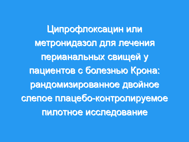 Мы провели плацебо-контролируемое пилотное исследование для оценки эффективности и безопасности метронидазола и ципрофлоксацина у пациентов с перианальной БК. Двадцать пять пациентов с БК и активно дренирующими перианальными свищами были рандомизированы для получения ципрофлоксацина в дозе 500 мг, метронидазола в дозе 500 мг или плацебо два раза в день в течение 10 недель. Ремиссия и ответ перианальных свищей определялись как закрытие всех свищей и закрытие по крайней мере 50% свищей, которые были дренирующими на исходном уровне, соответственно. Первичной конечной точкой была ремиссия через 10 недель. Десять пациентов были рандомизированы на ципрофлоксацин, 7 — на метронидазол и 8 — на плацебо. Ремиссия на 10-й неделе наступила у 3 пациентов (30%), получавших ципрофлоксацин, ни у одного пациента (0%), получавшего метронидазол, и у 1 пациента (12,5%), получавшего плацебо (Р = 0,41). Ответ на 10-й неделе наблюдался у 4 пациентов (40%), получавших ципрофлоксацин, у 1 пациента (14,3%), получавшего метронидазол, и у 1 пациента (12,5%), получавшего плацебо (Р = 0,43). Прекращение исследования до 10-й недели произошло у 1 пациента (10%), получавшего ципрофлоксацин, у 5 пациентов (71,4%), получавших метронидазол, и у 1 пациента (12,5%), получавшего плацебо (P <, 0,02). Серьезных нежелательных явлений не наблюдалось.