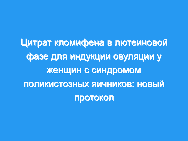 Протестировать новый протокол введения кломифена цитрата в лютеиновую фазу (CC) для индукции овуляции у женщин с синдромом поликистозных яичников (СПКЯ). Дизайн: Проспективное, рандомизированное, контролируемое исследование.