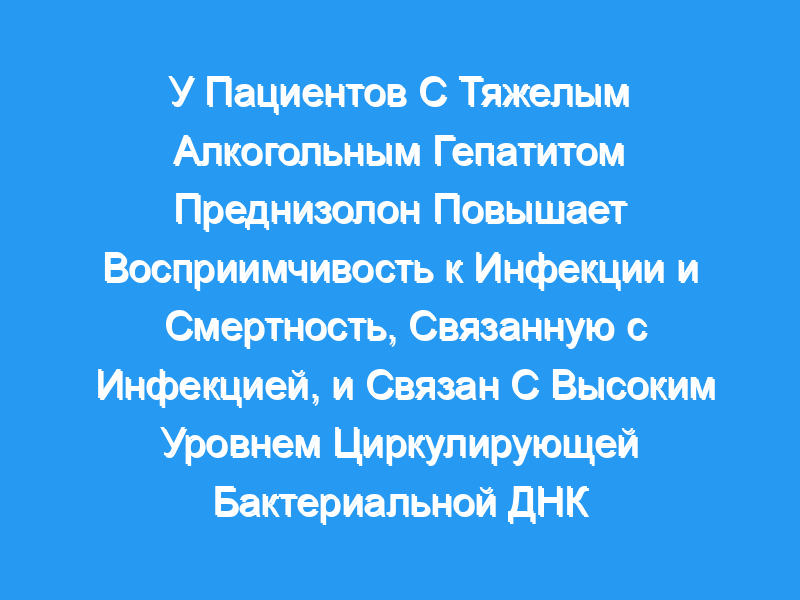 Предпосылки и цели: Инфекции часто встречаются у пациентов с тяжелым алкогольным гепатитом (SAH), но имеется мало информации о том, как прогнозировать их развитие или их воздействие на пациентов. Преднизолон рекомендуется для лечения САК, но может увеличить восприимчивость к инфекции. Мы сравнили влияние инфекции на клинические исходы пациентов, получавших преднизолон и без него, и выявили факторы риска развития инфекции при САК.