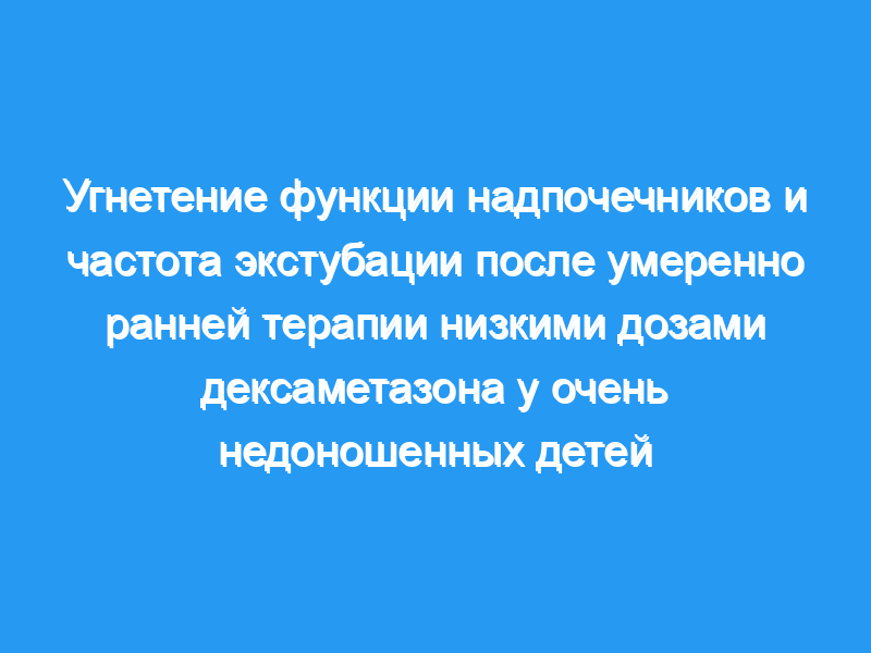 Умеренно ранний 14-дневный курс отлучения от груди с низкими дозами дексаметазона существенно не подавляет функцию надпочечников у очень недоношенных детей с РДС, но ускоряет отлучение от аппарата искусственной вентиляции легких.