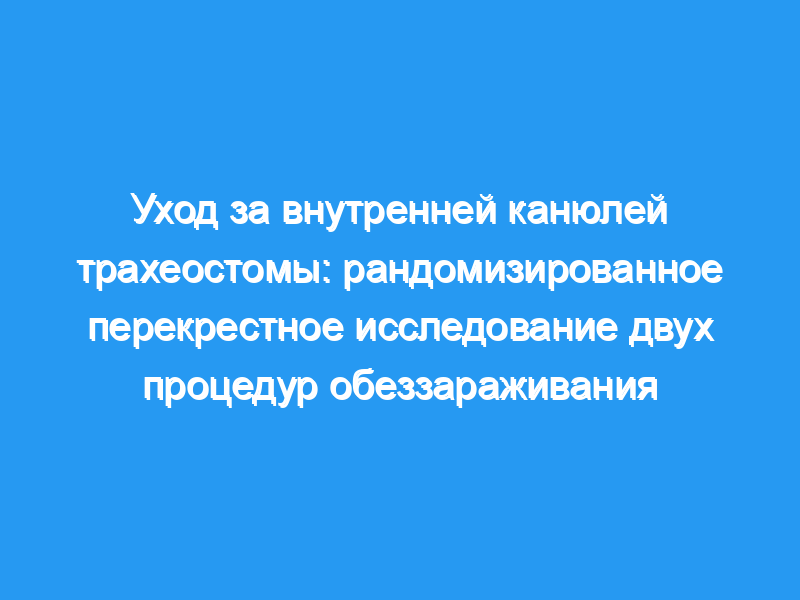 На сегодняшний день существует несколько методов обеззараживания внутренних канюль. Эти методы основаны не на научных данных, а часто на местных клинических традициях. В этом исследовании сравниваются два различных метода обеззараживания. Цель состояла в том, чтобы найти практичный и безопасный метод обеззараживания. Это рандомизированное, однослепое, сравнительное перекрестное исследование. Пятьдесят амбулаторных пациентов с длительной трахеостомией с внутренней канюлей были последовательно включены и случайным образом распределены для начала с одной из двух различных последовательностей лечения: детергент и хлоргексидин-спирт (А) или детергент (Б). Образцы для бактериальной культуры отбирали до и после обеззараживания и подсчитывали количество колоний бактерий.
