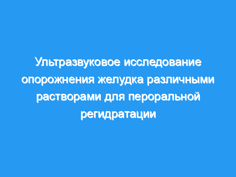 Опорожнение желудка 4 различными растворами для пероральной регидратации было исследовано с помощью ультразвука у 7 здоровых добровольцев в рандомизированном двойном слепом исследовании.