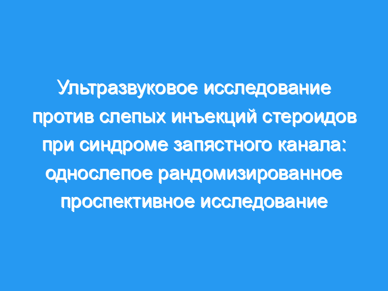 Целью данного исследования было сравнение эффективности и безопасности инъекций стероидов под контролем ультразвука (УЗИ) и слепых инъекций стероидов у пациентов с синдромом запястного канала (CTS). Дизайн: В это проспективное рандомизированное одиночное слепое клиническое исследование были включены 46 пациентов с CTS (46 пораженных срединных нервов). Испытуемые были рандомизированы — либо в группу под руководством УЗИ, либо в группу слепых инъекций — до того, как они получили 40 мг метилпреднизолона. Они были оценены с использованием Бостонского опросника симптомов/функций запястного канала на исходном этапе и через 6 недель и 12 недель после инъекции, и были отмечены побочные эффекты.