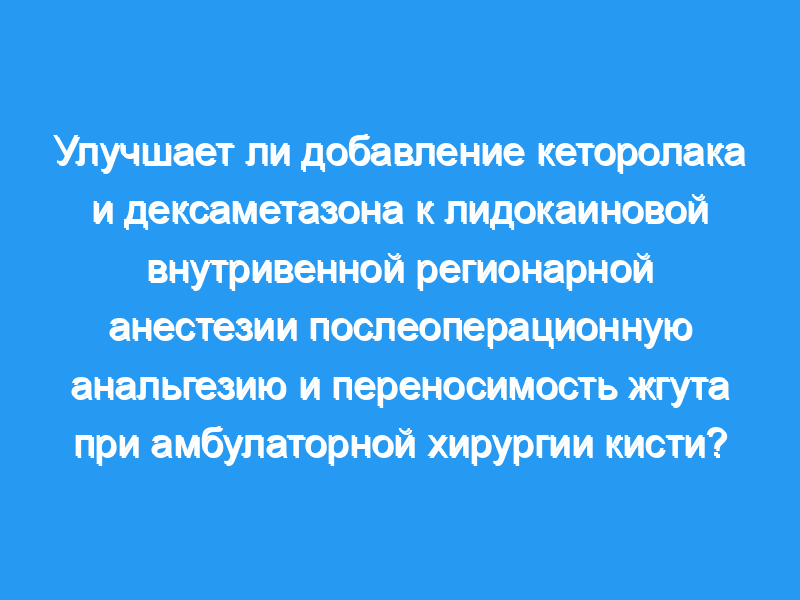 ИВРА с лидокаином и включением кеторолака и дексаметазона обеспечивает эффективную периоперационную анальгезию для пациентов, перенесших амбулаторную операцию на кисти, по сравнению с использованием только лидокаина или лидокаина с кеторолаком ИВРА.
