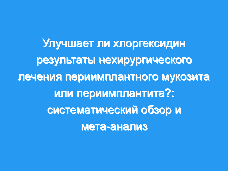 С увеличением числа имплантатов, устанавливаемых в клинической практике, растет частота периимплантационных заболеваний. Неизвестно, улучшает ли хлоргексидин (CHX) результаты лечения периимплантационных заболеваний. Целью этого систематического обзора и мета-анализа была оценка роли CHX в улучшении результатов при нехирургическом лечении периимплантного мукозита и периимплантита.